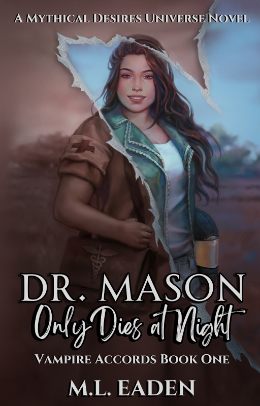 Dr. Mason Only Dies At Night is an adult urban fantasy vampire romance with as strong female POV and FMM+MM polyamorous relationships. The Mythical Desires Universe is a queer-centric world where myth and legends exist alongside advanced science and technology.